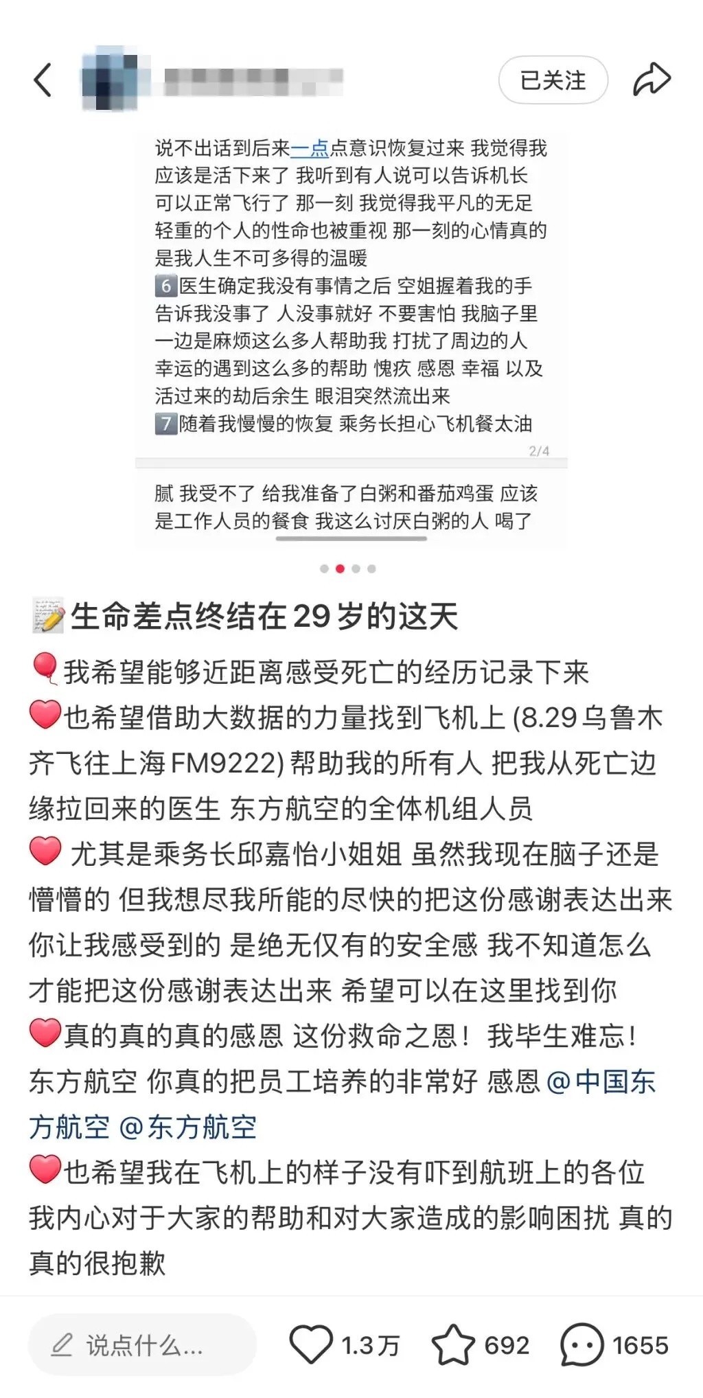 这名旅客获救后通过社交媒体发文《生命差点终结在29岁这天》讲述了这段惊险时刻背后的温暖与互助并感谢把自己从死亡边缘拉回来的医生和机组人员